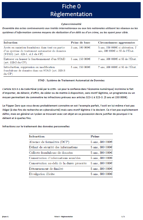 Fiche 0 – Règlementation